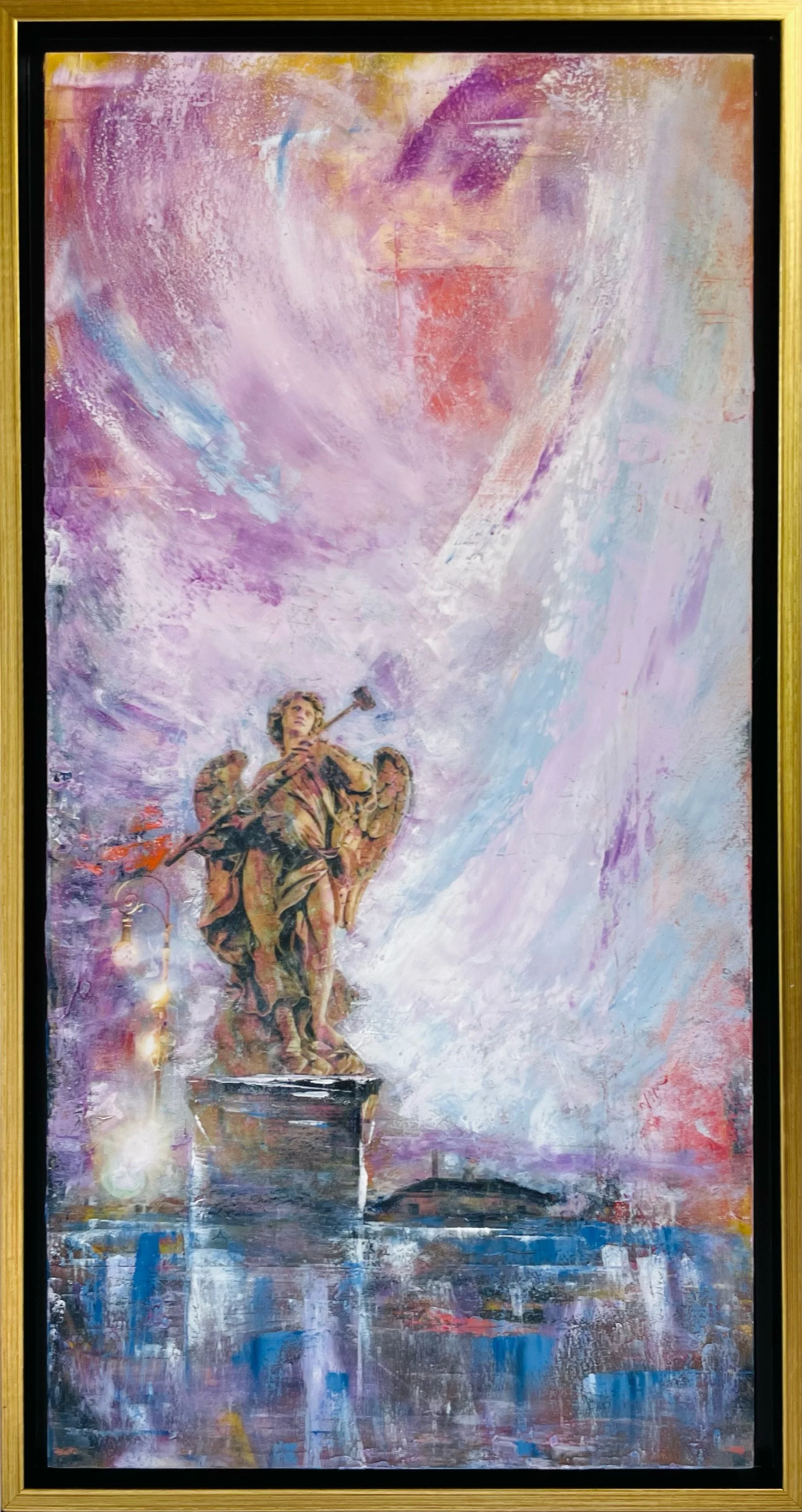 SOLD - Madison Art Guild Gallery, Georgia Arma Christi (uno) 10 x 20 Oil/Cold Wax on Wood Panel